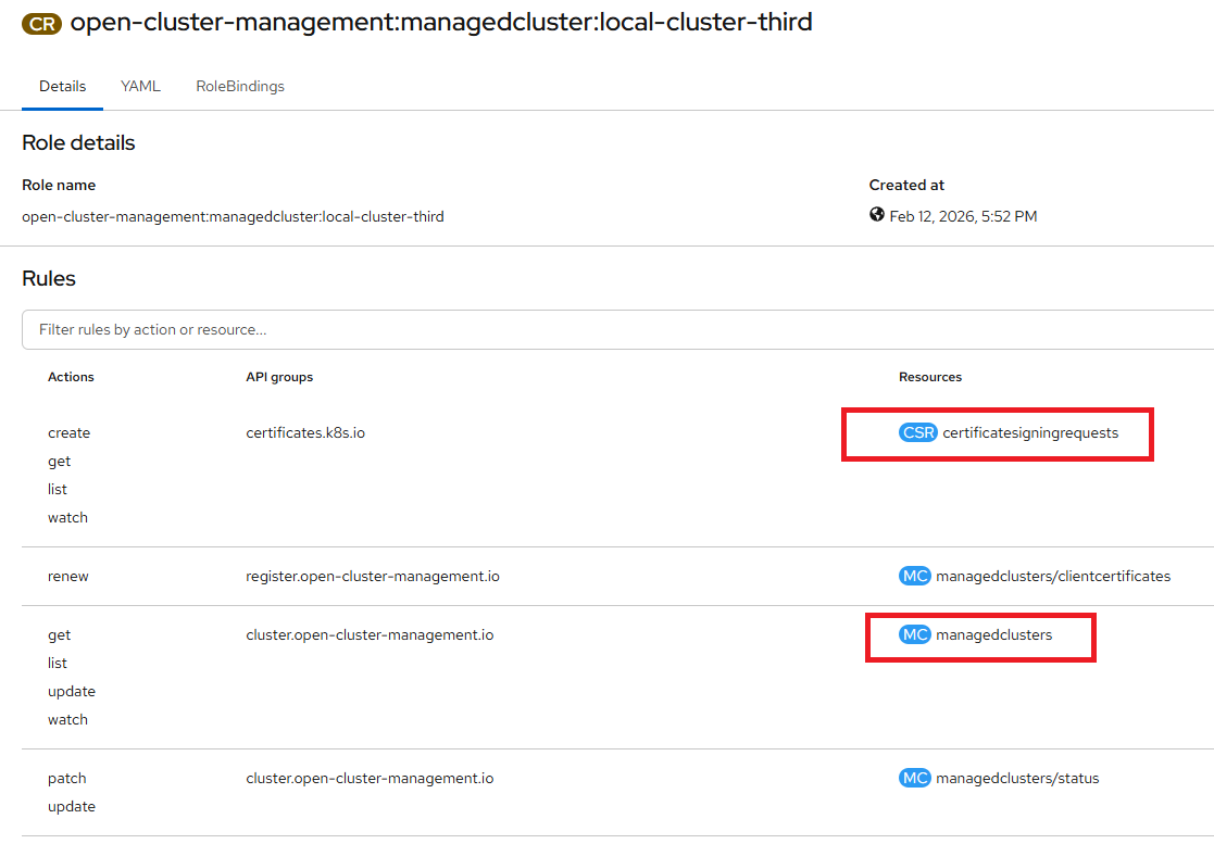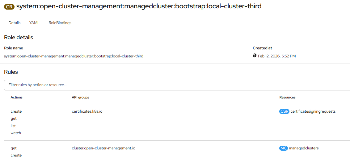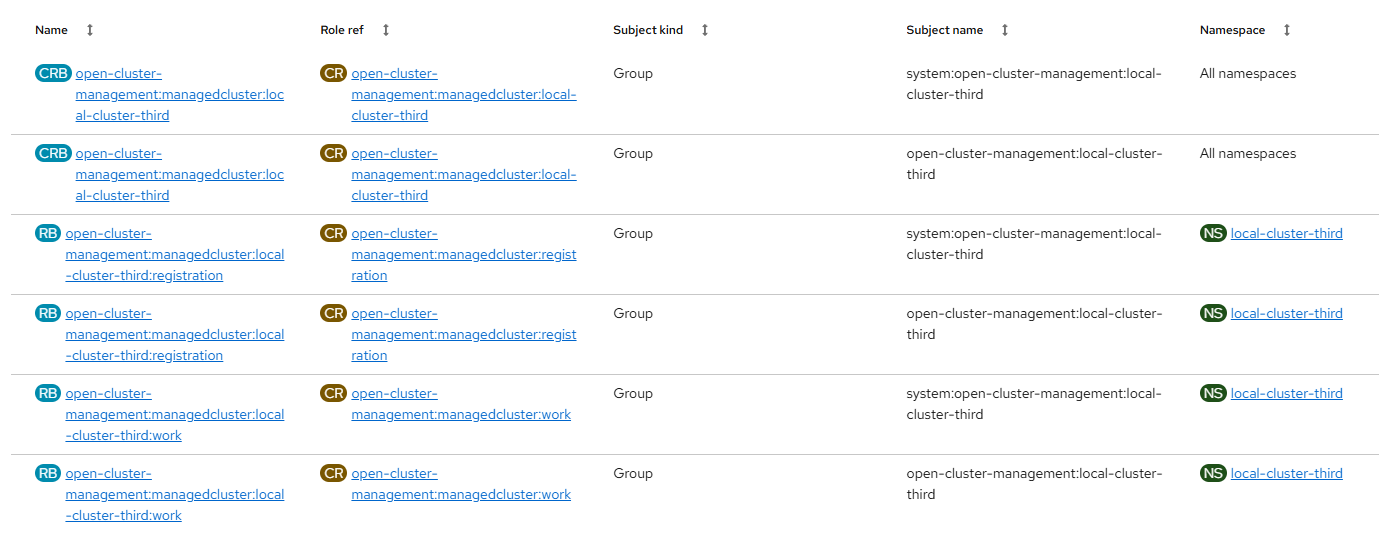 - User: system:open-cluster-management:local-cluster-third:e4274445-38bb-4d59-b0ac-06f4f67f40af